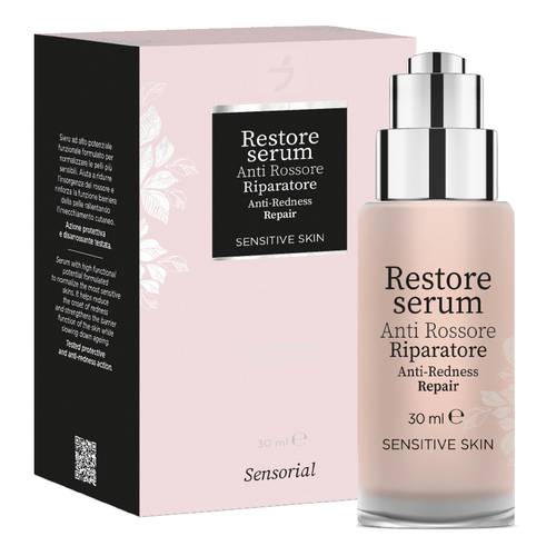 Restore serumAnti Rossore Riparatore Descrizione Siero ad alto potenziale funzionale formulato per normalizzare le pelli più sensibili. Aiuta a ridurre l’insorgenza del rossore e rinforza la funzione barriera della pelle rallentando l’invecchiamento cutaneo. Senza profumo. Formato Contenuto netto: 30 ml. Erogare la dose di trattamento e applicare con un leggero massaggio sulla pelle detersa del viso e del collo con frequenza adatta alle esigenze della propria pelle. Componenti Aqua, butylene glycol, Phaseolus radiatus seed extract, glycerin, hydroxyacetophenone, trisodium ethylenediamine disuccinate, cellulose gum, phenoxy...