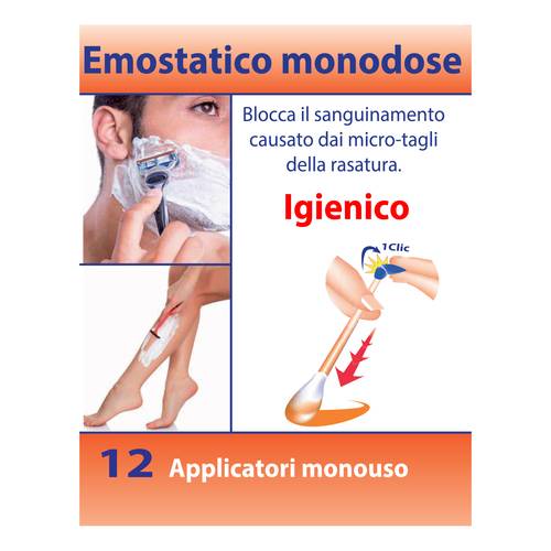 Emostatico monodose Blocca il sanguinamento causato dai micro-tagli della rasatura. Igienico Presentazione Clic&Go è una gamma di applicatori monodose che hanno il vantaggio di essere: • pronti all 'uso, rapidi e pratici, semplificano i gesti quotidiani. Basta cliccare per far scendere la soluzione sul cotone. • Dispositivi monouso a garanzia della protezione contro le contaminazioni e per una conservazione ottimale della soluzione attiva contenuta. • Igienici e ideali per una applicazione localizzata e senza contatti con le mani. • Contenenti la giusta quantità di soluzione attiva, 0,180 m...